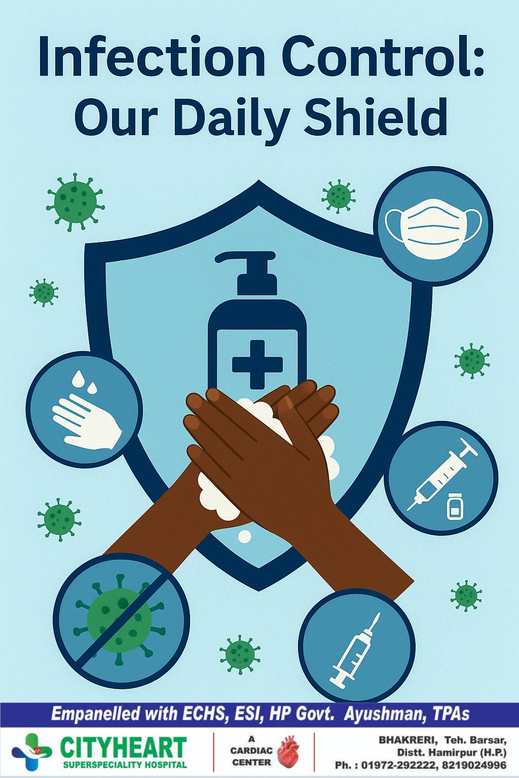 At CityHeart Superspeciality Hospital, we believe infection prevention begins with awareness. Our ongoing programs in communities, schools, and online platforms aim to empower everyone to be a part of this protective shield.