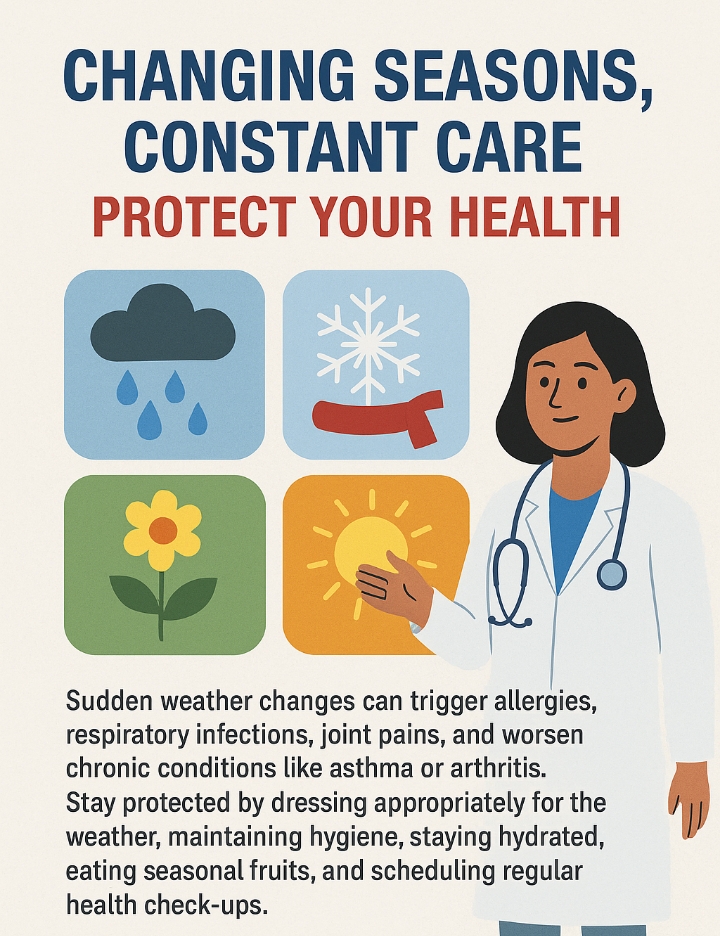 During monsoons, increased humidity invites infections and weakens immunity. Winters may aggravate breathing issues, while scorching summers demand hydration and skin care. Each season brings its own risks, but with timely care and simple precautions, you can stay ahead.